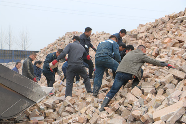 近期,原焦电实业公司焦炉主体工程开始拆除,废弃的建筑垃圾中砖头砖块较多,且能够用于井下封闭密闭等基础工程的施工,欢城煤矿看到了新的“发财”机会,主动提出帮助处理建筑“垃圾”,组织科室、机厂、木厂及各工区地面人员,利用工作之余多次到拆除的建筑垃圾堆中挑拣可以利用的废砖。在挑砖的过程中大家热情高涨,争先恐后,都以能亲自为矿井节省一分钱、贡献一份力为荣。同志们克服建筑垃圾堆高、风大、尘土大的不利条件,安全高效的用手将半块的、整块的砖头一块一块的从中挑出。到目前为止,欢城煤矿共从废弃的建筑垃圾中挑出可用的砖头砖块10余万块,创造了较好的经济效益。