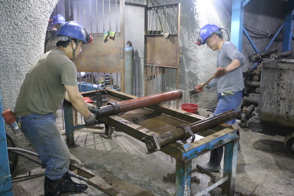走进井下维修车间,你便可看到拆卸机拆卸、打磨柱缸、更换密封圈、检测压力、喷号等一派繁忙的景象。由于两个采煤工区将同时面临搬家撤面,支柱使用周期长,损坏支柱多,井下维修车间需要维修大量的液压支柱。在时间短、任务重的前提下,液压车间维修人员分成早、中班两个班次,在10天左右,维修600余棵各种型号的单体液压支柱,提前完成了矿领导交给的液压支柱维修任务。