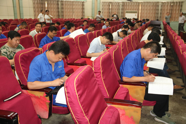 值《煤矿安全生产标准化考核定级办法(试行)》和《煤矿安全生产标准化基本要求及评分方法(试行)》即将试行之际,崔庄煤矿煤矿安全生产标准化“新标准”学习竞赛在职工餐厅二楼会议室举行。来自基层区队的区长、书记、技术员,包括参照区队管理的单位、生产职能科室和行管科室副科级以上干部参加了竞赛活动。
