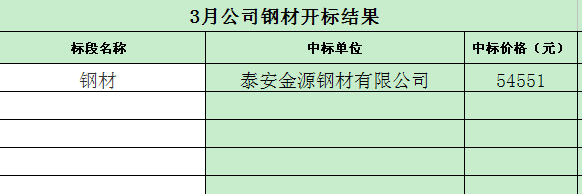 招标结果:山东省微山湖矿业集团3月(钢材)材料采购