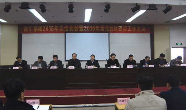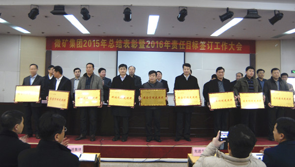 2016年1月9日,集团公司召开2015年总结表彰暨2016年责任目标签订工作大会。会议全面回顾总结了公司一年来的工作,表彰了各单位、各岗位涌现出来的先进集体和先进个人;安排部署了2016年的工作任务,号召集团上下要秉承“安全为天、效益为本”的企业理念,践行“遵章守纪、用心工作、乐于奉献”的企业核心价值观,为全面完成2016年各项任务目标、开创集团公司工作新局面而努力奋斗。