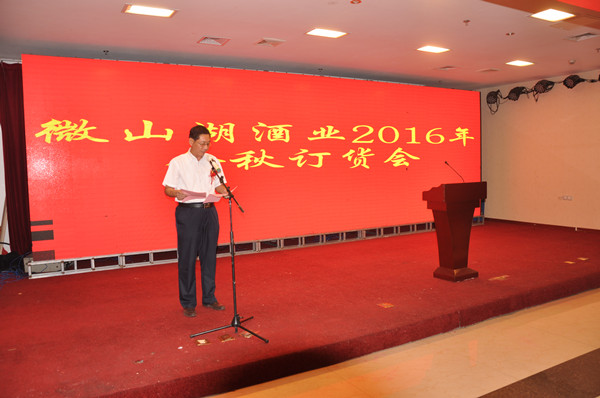 会议由微山湖酒业公司总经理朱思良主持。会上,微山湖酒业公司党总支书记、副总经理赵井林介绍了产品促销优惠政策;客户代表、嘉宾代表分别作了热情洋溢的发言,代表全体经销商对酒业公司各位领导及全体“业务员”表示衷心的感谢,向微山湖酒业公司金秋节订货会的隆重召开表示热烈的祝贺,对微山湖矿业集团、微山湖酒业公司和德道源公司所取得的骄人业绩表示真诚的祝贺!代表们在发言中指出,酒业公司强大的后盾以及过硬的产品品质保证下,使我们在强手如林、品牌扎堆的市场能够占得一席之地,酒业公司一直紧紧把握市场脉搏,贴近消费者,不断推出符合市场的政策、广告支持。在酒业公司的这种以市场为导向的营销体系的指导下,我们紧跟步伐,才有了今天的销售业绩。希望微山湖酒业公司多研发适应消费者口味的白酒,进一步改进生产工艺,提高产品质量,向管理要效益,向质量要市场,在完善的服务中树立完美的形象。我们将继续宣传好、推介好微山湖品牌,让微山湖酒四海飘香,取得更大业绩。
