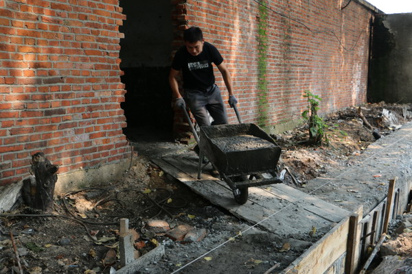 职工熟练掌握了推独轮车技术