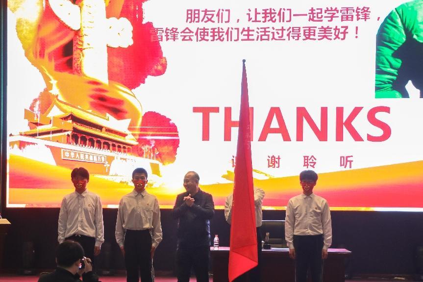 报告会后,陶克将军为“学雷锋志愿服务队”授旗,与河工学子们一起见证学校2023年雷锋志愿服务月活动正式启动,并与青年马克思主义培养工程培训班的学员合影留念,勉励大家从我做起、从小事做起,营造全社会人人学雷锋的浓厚氛围。