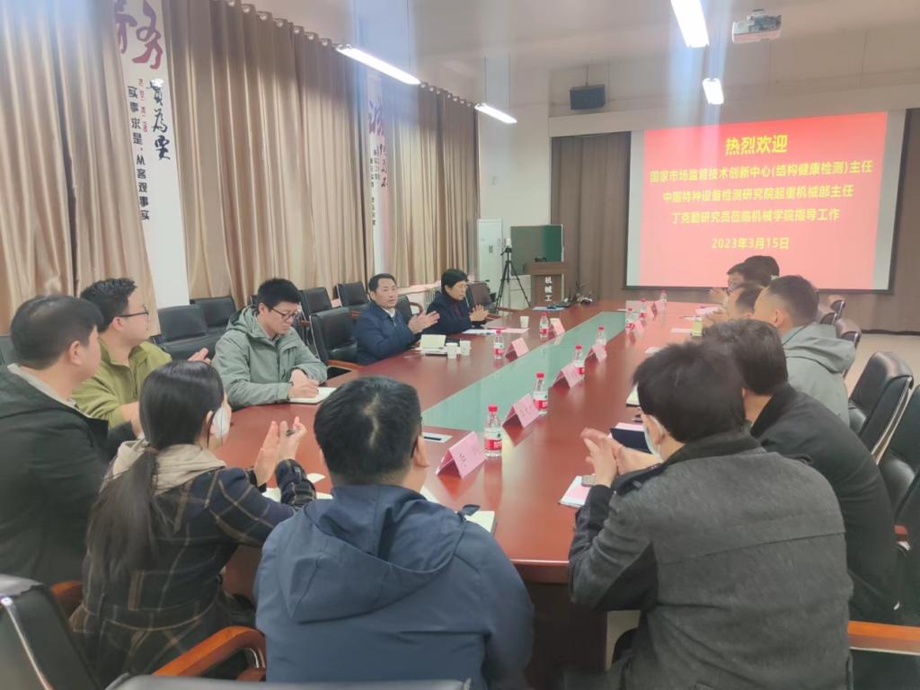 丁克勤研究员来到机械学院与科研处、相关学院负责人及博士进行了座谈。丁克勤介绍了国家市场监管技术创新中心(结构健康监测)、中国特种设备检测研究院相关情况,阐释了起重机械设备行业的发展前景,并就拟开展起重机械协同创新合作提出了工作思路。