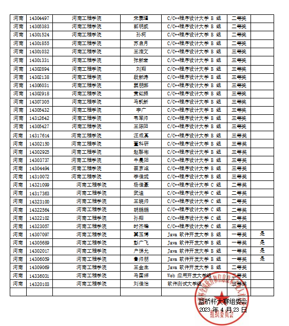 4月8日,蓝桥杯大赛省赛在各省同时举行,软件学院作为河南省赛点承办方之一,在学院领导的大力支持下,学院蓝桥杯竞赛团队全体教师分工明确、各司其职、默默付出,提前一个月开展赛点筹备工作,积极与大赛组委会沟通竞赛相关事宜,并完成了赛事宣传、竞赛环境搭建、监考组织及后勤保障等工作,为赛事正常开展提供了有力保障。
