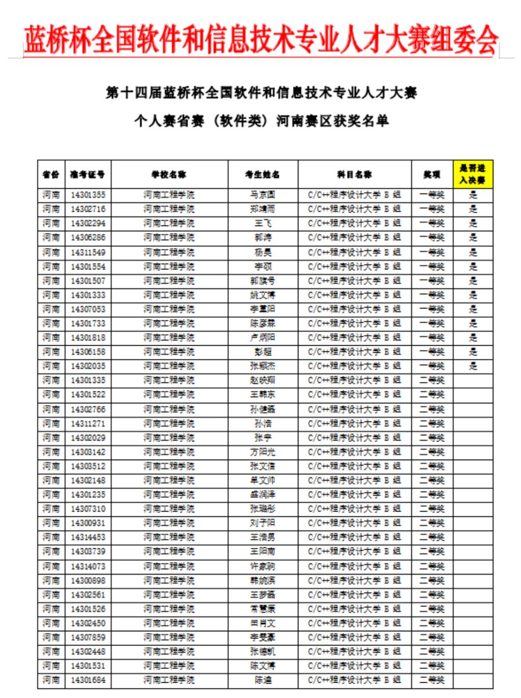 近日,第十四届“蓝桥杯”全国软件和信息技术专业人才大赛省赛成绩揭晓。软件学子再创佳绩,喜获省级一等奖17项、二等奖33项、三等奖19项,奖项合计69项,晋级全国总决赛人数再创新高。省赛一等奖选手将代表学校冲刺全国总决赛。