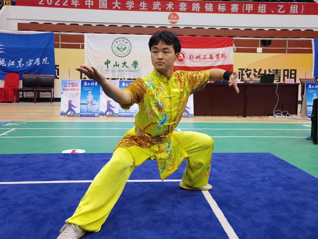 本次比赛由中国大学生体育协会主办,辽阳市人民政府承办,来自全国115所院校的952名运动员参加此次赛事。我校武术代表队在体育教学部周凯、朱轶龙老师的带领下,分别参与5个单项的比赛。经过激烈角逐,计算机学院2021级孙振杰同学获得男子甲组传统枪术冠军、男子甲组少林拳冠军、男子甲组八极拳第六名;环境与生物工程学院2021级申舒彤同学获得男子甲组陈式太极拳第八名。