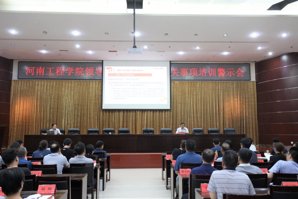为高质量做好2023年领导干部报告个人有关事项工作,6月29日下午,学校在综合楼2楼会议室召开领导干部报告个人有关事项工作专题培训与警示教育会。全体中层领导人员参加会议,校纪委书记李德耀出席会议并讲话。