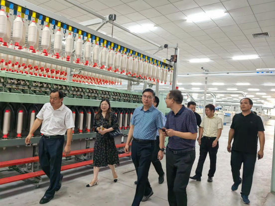 张瑞林一行在太康县工信局局长姚跃、副局长马学来陪同下,先后参观了银鑫棉业智能车间、万利源纺纱二车间、鸿业家纺,详细了解了棉纱的生产流程、智能车间的运转效率及家纺制造的产能情况等。