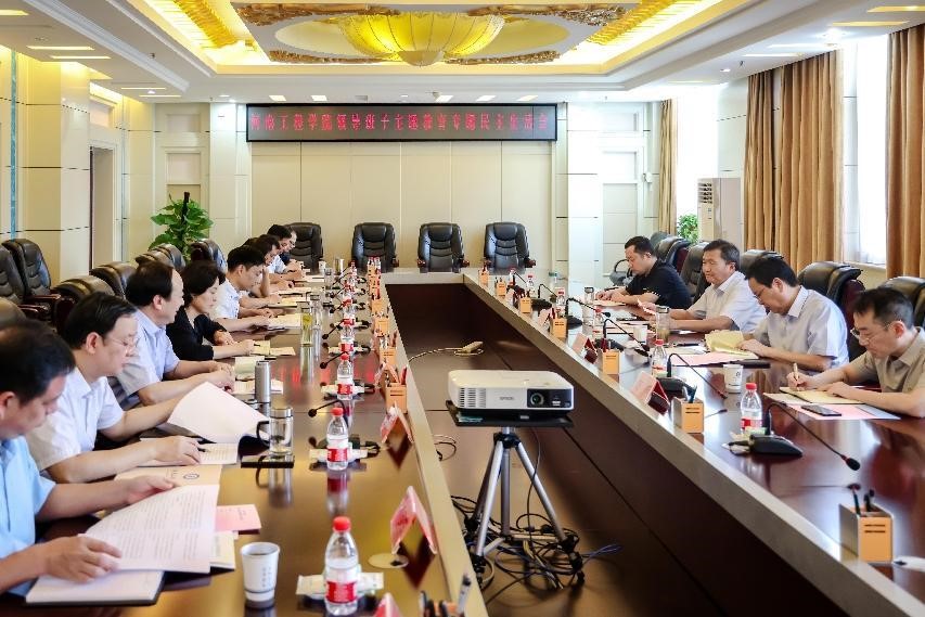 8月29日,河南工程学院领导班子学习贯彻习近平新时代中国特色社会主义思想主题教育专题民主生活会在综合楼12楼会议室召开。省委第二十四巡回指导组全体人员到会指导,组长刘兴彬作点评讲话。学校党委书记刘永涛主持会议。