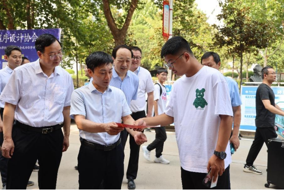 校领导逐一看望各学院迎新点,查看迎新场地布置、人员安排、接待准备、引导服务、氛围宣传、后勤保障等情况,详细了解各学院迎新接待流程与新生报到信息,查看相关新生保障服务工作落实情况。对各学院独具特色、扎实服务的暖心做法给予了肯定,希望大家继续以良好的精神面貌做好迎新工作。