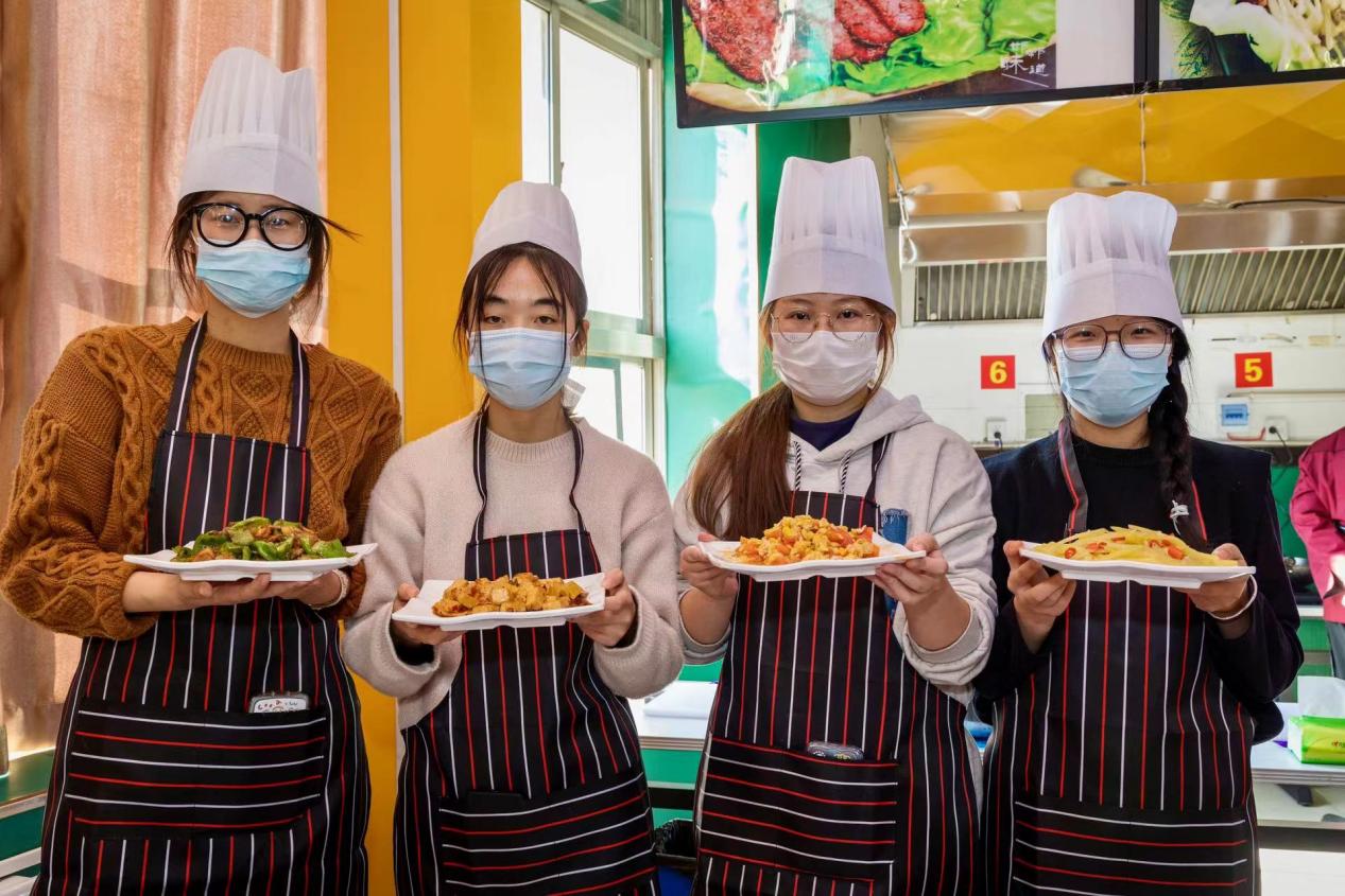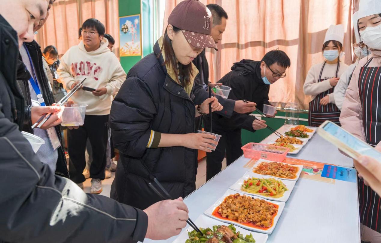 不多时,在参赛选手的忙碌下,一道道色香诱人的菜品纷纷上桌,细看菜品,翠绿的葱丝、红椒点缀在土豆丝中,绿油油的青椒配上一块块五花肉,还有细碎的豆瓣酱融入热豆腐……无不彰显着参赛选手“厨”类拔萃的智慧与才华,各参赛选手将劳动成果进行展示,一道道菜品或成功或稚嫩,但都完美地将认真投入、追求完美、充分自信融入其中。
