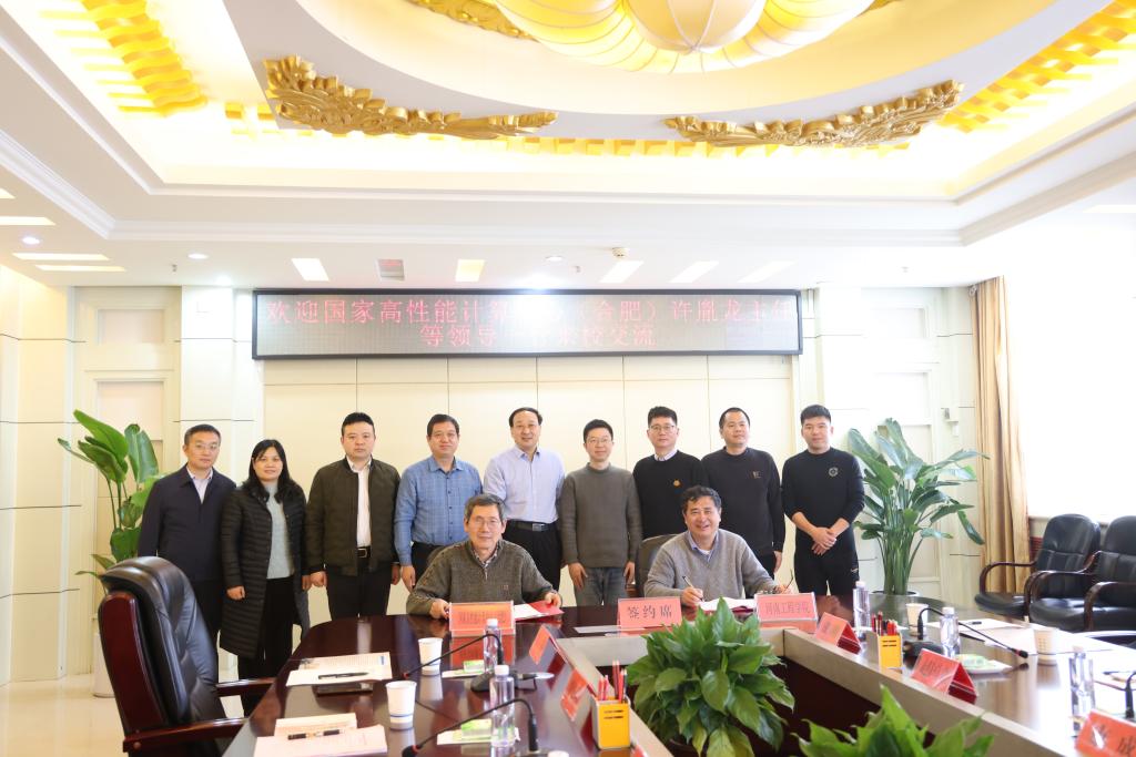 1月12日上午,国家高性能计算中心(合肥)执行主任许胤龙及龙芯中科技术股份有限公司、安徽谨诚教育科技集团一行莅临我校开展校企合作交流。校党委书记刘永涛、校长李利英会见了来访人员。副校长焦有宙及相关职能部门、学院负责人参加交流会,会议由副校长王永恒主持。