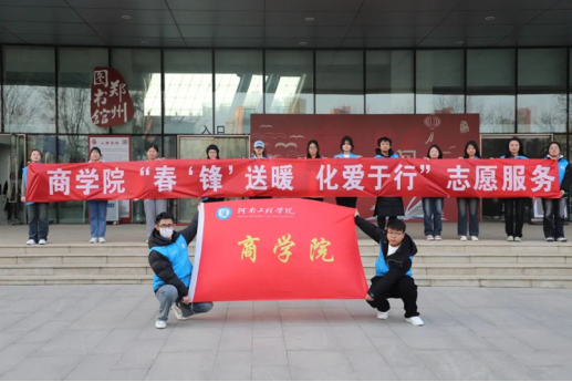 文明润泽人心,服务传递力量。商学院组织志愿者前往郑州图书馆,开展“春‘锋’送暖,化爱于行”志愿服务活动,协助图书馆管理人员对书籍进行排列摆放、规整桌椅、帮助借阅者取书。服装学院深入属地开展“走进敬老院,学雷锋爱心活动”,为老人带去生活物资和欢声笑语。艺术设计学院深入荆垌社区开展“禁毒宣传,一起珍爱生命”宣讲活动,向社区普及禁毒知识,引导居民主动学习毒品知识,增强拒毒意识。