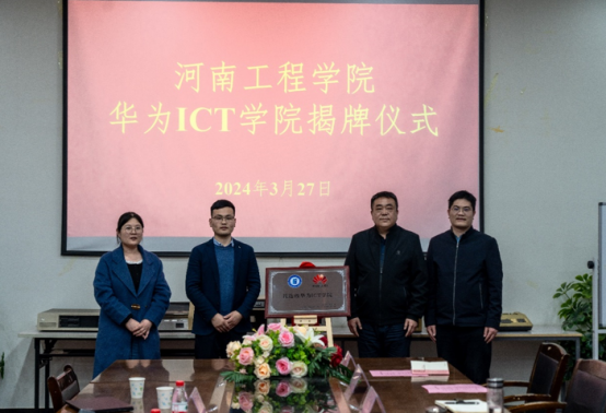 3月27日下午,河南工程学院与华为技术有限公司(以下简称“华为”)、深圳市讯方技术股份有限公司(以下简称“讯方技术”)共建的“优选级华为ICT学院”项目揭牌仪式举行。计算机学院党政领导及教师代表出席仪式。