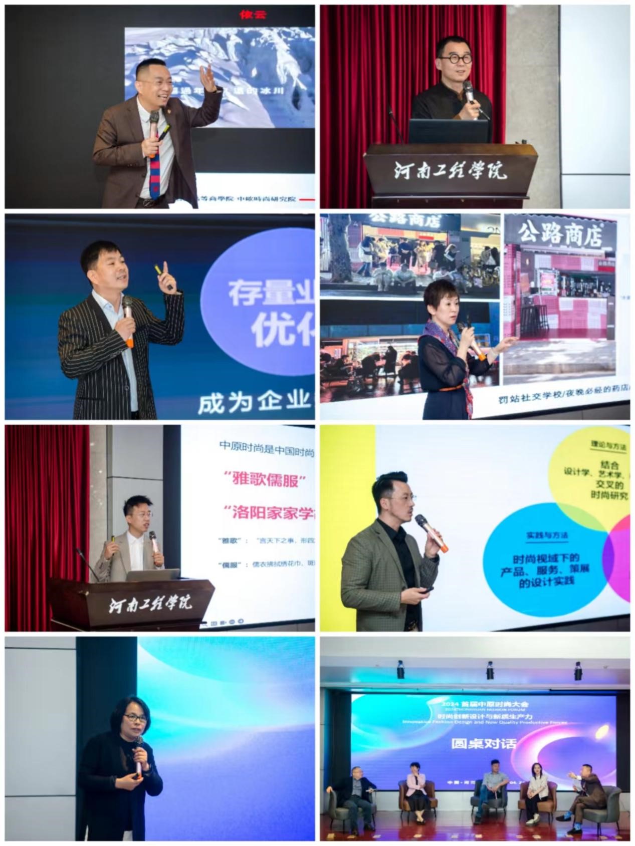 浙江理工大学服装学院院长,教育部“新世纪优秀人才”,博士生导师崔荣荣教授;中欧时尚研究院院长、教授,英国皇家学会工艺院(RSA)终身院士吴波教授;法国格勒诺布尔大学中法项目特聘教授,香港高等商学院管理学史伟栋教授;中组部国家海外高层次人才,同济大学长聘特聘教授,博士生导师孙捷教授;苏州大学服装设计与工程系副主任、香港理工大学高级研究员洪岩教授;广州诺睿施企业管理有限公司合伙人、上海悦目集品牌管理有限公司创始人刘向辉教授;河南工程学院副校长,硕士生导师张巧玲教授,分别做主题演讲。大会学术主持由河南工程学院副校长张巧玲教授和中欧时尚研究院院长吴波教授共同担任。