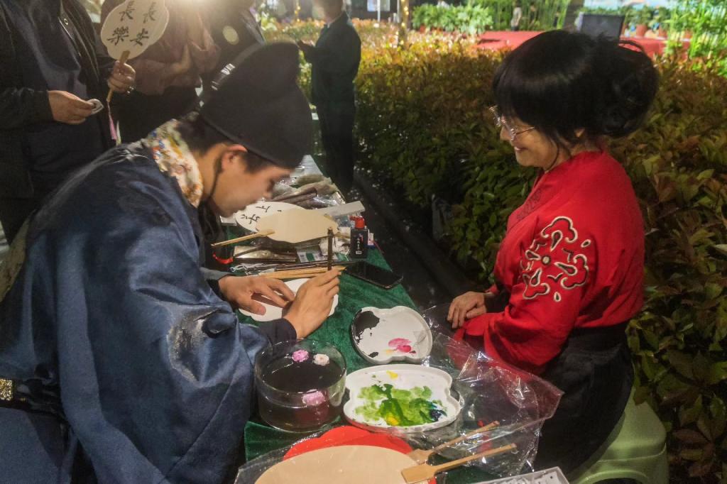 除了赏花拍照,文化节现场还设置了丰富多彩的活动。学校食堂精心准备的特色小吃吸引了众多师生品尝美食,跳蚤集市则为大家提供了一个交流闲置物品的平台。茶艺教学、民族舞表演、诗词音乐秀、汉服快闪秀等文艺活动则展现了传统文化的魅力,让同学们在欣赏美景的同时,也能感受到中华文化的博大精深。