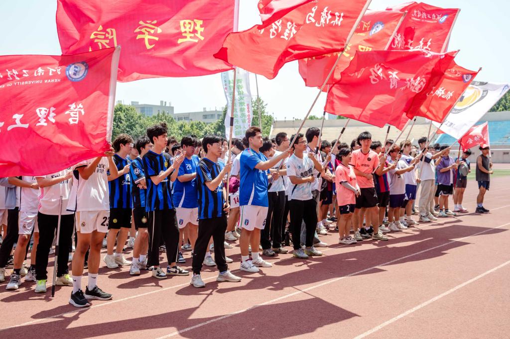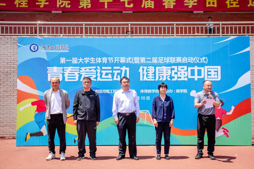 为深入落实“五育融通”理念,贯彻学校以体育人、体教融合,增强学生身体素质,促进学生身心健康全面发展。5月10日中午,河南工程学院在南校区体育场举办第一届大学生体育节开幕式暨第二届足球联赛启动仪式。活动以“青春爱运动 健康强中国”为主题,校党委副书记刘超出席开幕式并发表讲话。相关部门负责人,各参赛学院分团委负责人、学生各单项体育协会成员共同参与开幕式。