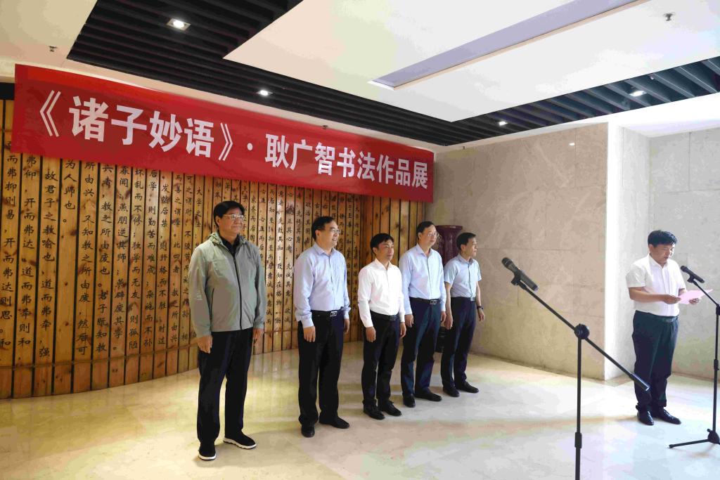 为弘扬优秀传统文化,提高国学普及水平,涵养家国情怀,5月15日上午,诸子妙语——耿广智书法作品展在综合楼一楼开展。校领导刘永涛、刘超、赵红亮、李德耀、张瑞林和校关工委常务副主任耿广智、关工委副主任袁静波及我校师生代表参加开幕式,党委副书记赵红亮主持开幕式。