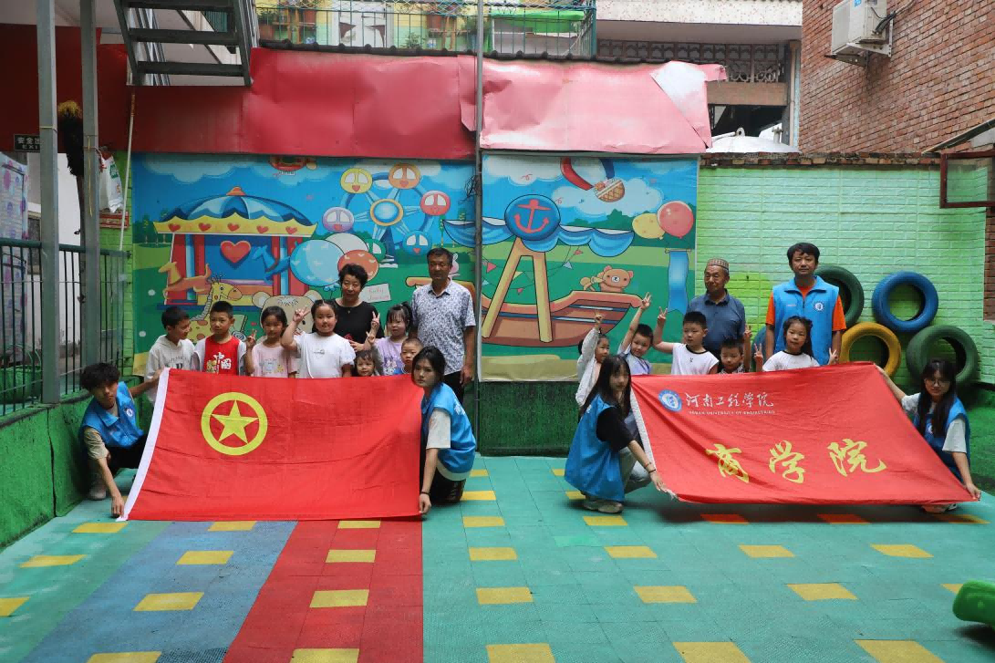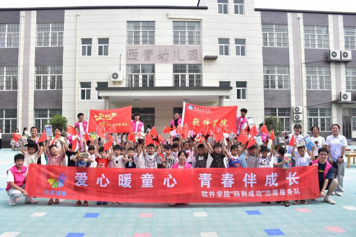 7月10日,软件学院“七彩假期”志愿服务队深入河南省安阳市滑县枣村乡西营幼儿园开展以“爱心暖童心,青春伴成长”为主题的关爱行动。团队带着爱心物资、文体用品等,为孩子们送上爱心,每一件小小的礼物都承载着软件学院对孩子们成长道路上的关心与鼓励。队员秉持着“给孩子们关爱”“融入孩子们当中去”的理念,开展了一系列特色主题活动小课堂,在这些课程中,队员们运用生动的情景剧和精美的手工、绘画等,激发孩子们对成长的美好憧憬和幸福向往,在他们幼小的心灵沃土播下爱国思想的种子,引导他们树立远大志向、扣好成长的第一粒纽扣。