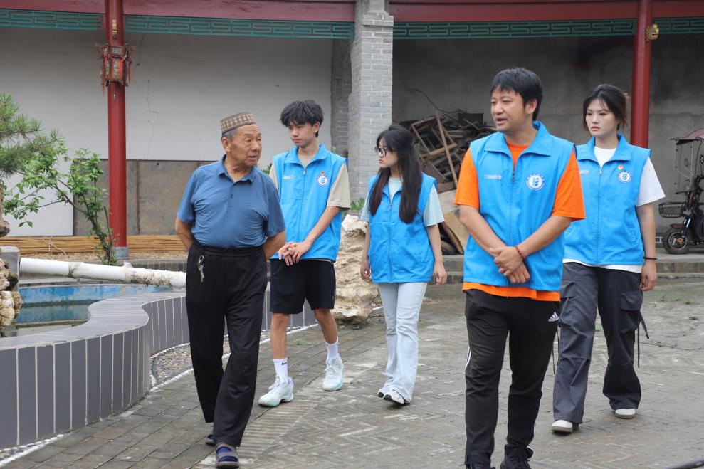 第一站,他们前往了下清宫,参观了社区党员之家及社区内历史文物建筑。社区现任党委书记岳超对下清宫的暑期社会实践表示热烈欢迎,并对所在社区内的历史文物建筑现状进行了介绍。社区原书记岳银松还为他们讲述了在资金困难的情况下,社区如何对下清宫历史文物进行抢修与保护。社区文物保护老师以专业视角向团队成员分析了社区现存古典建筑的建筑形式,同时团队成员现场学习了明朝时期三座砖塔的维修与加固工艺。