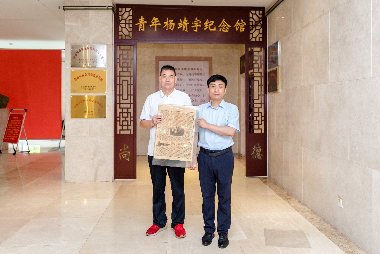8月9日上午,著名红色收藏家、中国收藏家协会书报刊委员会副主任杨翔飞向河南工程学院捐赠文献资料,捐赠仪式在学校青年杨靖宇纪念馆举行。中国日报河南记者站站长史宝银,优秀校友、河南中经智库企业管理咨询有限公司总经理徐开国,河南工程学院党委书记刘永涛、党委副书记赵红亮出席捐赠仪式,党委办公室、团委负责同志陪同参加。