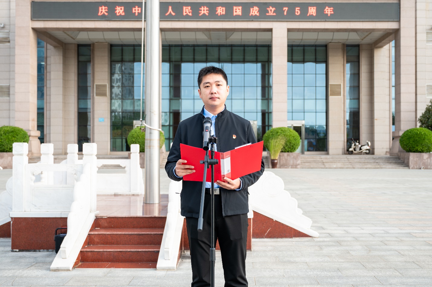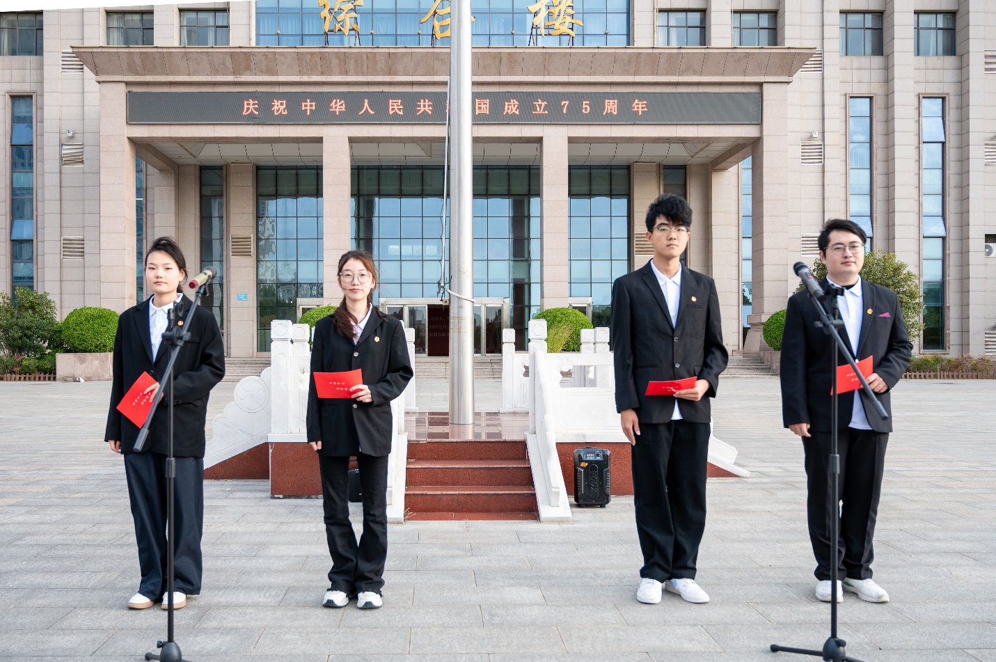 为庆祝中华人民共和国成立75周年,进一步激励广大师生奋进新征程,建功新时代。10月1日清晨,我校在综合楼前广场隆重举行“凝聚奋进力量,同心礼赞祖国”主题升国旗仪式。党委书记刘永涛、副校长张瑞林,部分职能部门负责人、校团委老师、各学院分团委书记、教师代表、学生代表参加升国旗仪式,仪式由党委副书记赵红亮主持。