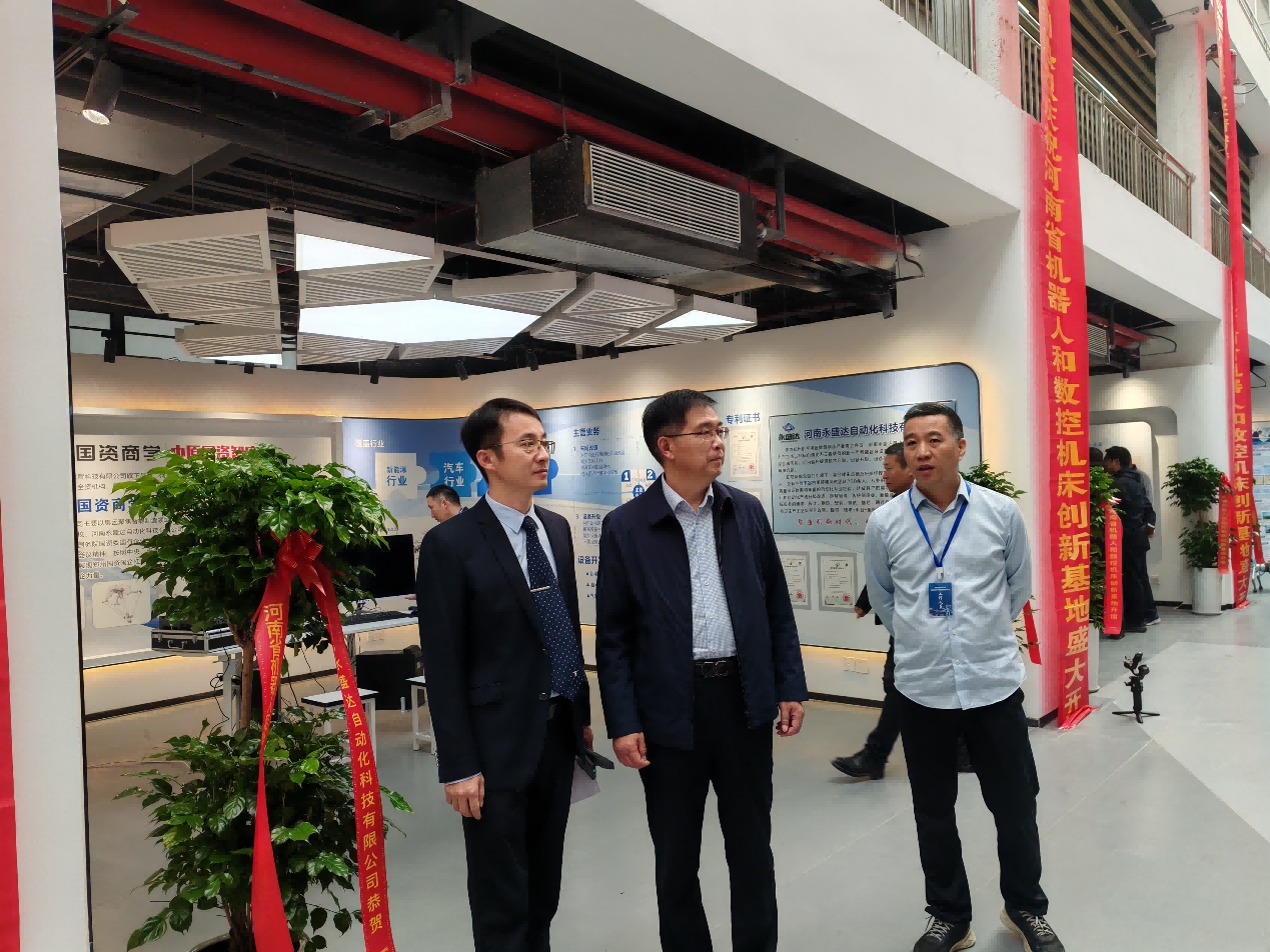 10月31日上午,由管理工程学院参与承办的河南省机器人和数控机床产业创新基地开馆仪式暨“机器人+”应用产业创新发展论坛,在中原区芝麻街双创园举行。河南工程学院副校长张瑞林、郑州市中原区委副书记、区长邓英文、河南省机器人与数控机床行业协会会长王济昌等高校、政府、协会领导出席开馆仪式与巡馆活动。管理工程学院院长黄德金主持发展论坛。