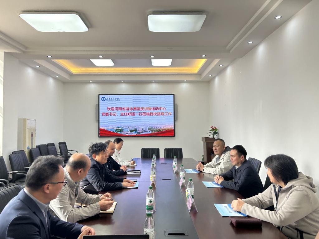 11月1日,河南省游泳赛艇皮划艇运动中心党委书记、主任郑猛一行来我校调研。校党委副书记赵红亮陪同调研。