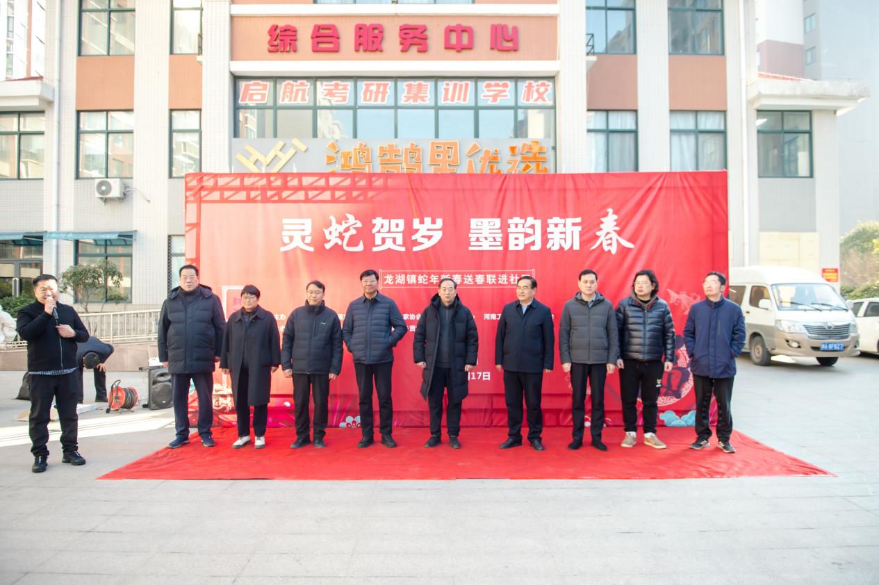 新春将至,年味渐浓。1月17日,由河南省教育界书画家协会、郑州市书法家协会、挥云斋艺术中心、河南工程学院工会委员会、新郑市龙湖镇人民政府主办,河南工程学院书法协会、新郑市龙湖镇乡贤联谊会承办的“灵蛇贺岁 墨韵新春”送春联进社区活动在鸿鹄花园热闹展开。河南工程学院党委副书记刘超、龙湖镇党委书记张宏政、河南省教育界书画家协会副主席耿广智,河南省教育界书画家协会主席谷景立,河南工程学院宣传部、工会相关负责人,新郑市委宣传部、新郑市文联有关领导参加活动。
