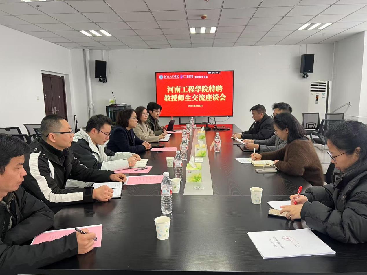 3月6日,服装学院举行特聘教授师生交流座谈会,河南工程学院副校长张巧玲,河南工程学院特聘教授洪岩,服装学院院长刘杰、副院长郭锐、部分骨干教师和学生代表参加会议。会议由刘杰主持。