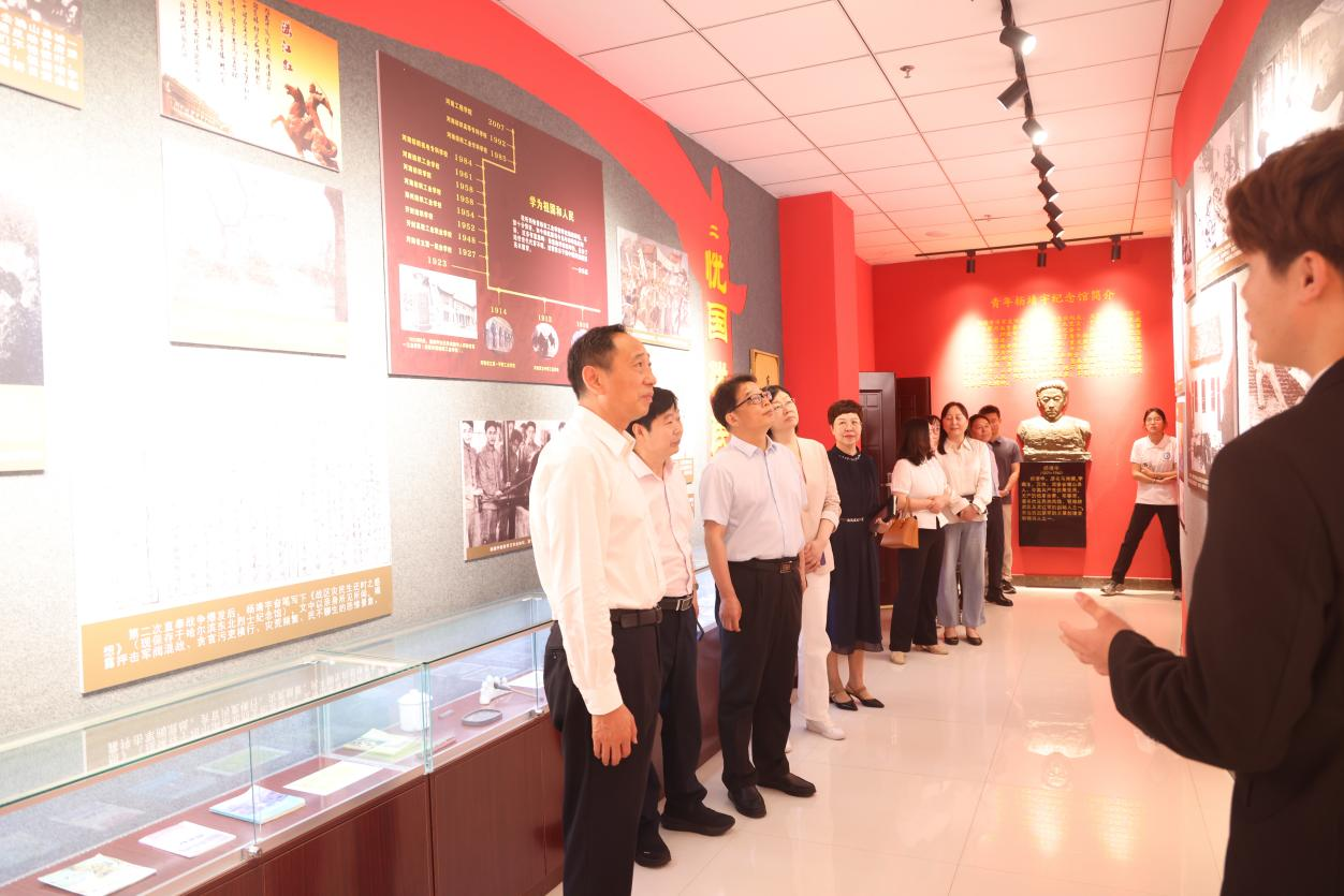 合作交流座谈前,郑州航空港区人民法院院长郭宝安一行参观了我校杨靖宇将军纪念馆。