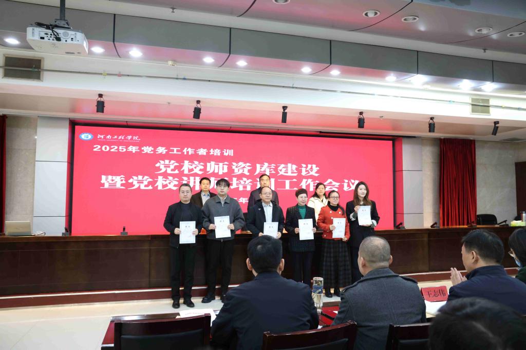 会上,组织部副部长陈自龙报告了学校党校师资库建设的背景目标、结构组成、遴选标准、管理原则及使用方法。与会领导为党校讲师颁发了聘任证书。