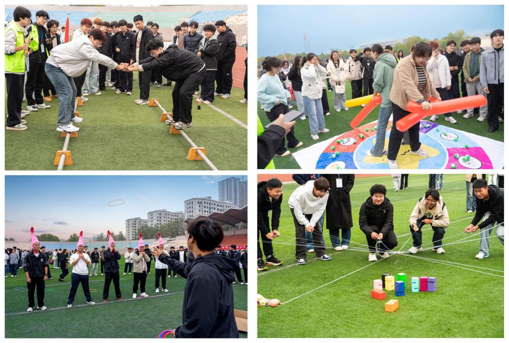 本届运动会的项目设置别出心裁,将心理素养的提升巧妙融入八个趣味盎然的竞赛中。在“情绪彩虹”沙包投掷挑战赛中,同学们通过投掷不同颜色的沙包,学习识别和表达情绪;“信任之旅”项目则要求队员蒙眼在同伴的言语指引下前进,极大地考验和增进了彼此的信任;“珠行万里”和“绳勾信任塔”搭建赛需要团队成员高度专注与精密配合,展现了集体的智慧与默契。而“萌鹅躲圈圈大挑战”、“旱地竞速龙舟”、“趣味碰碰球”等项目更是妙趣横生,将现场气氛不断推向高潮。各学院参赛队伍全情投入,默契协作,不仅比拼速度与技巧,更展现了理解、支持与鼓励的团队正能量。