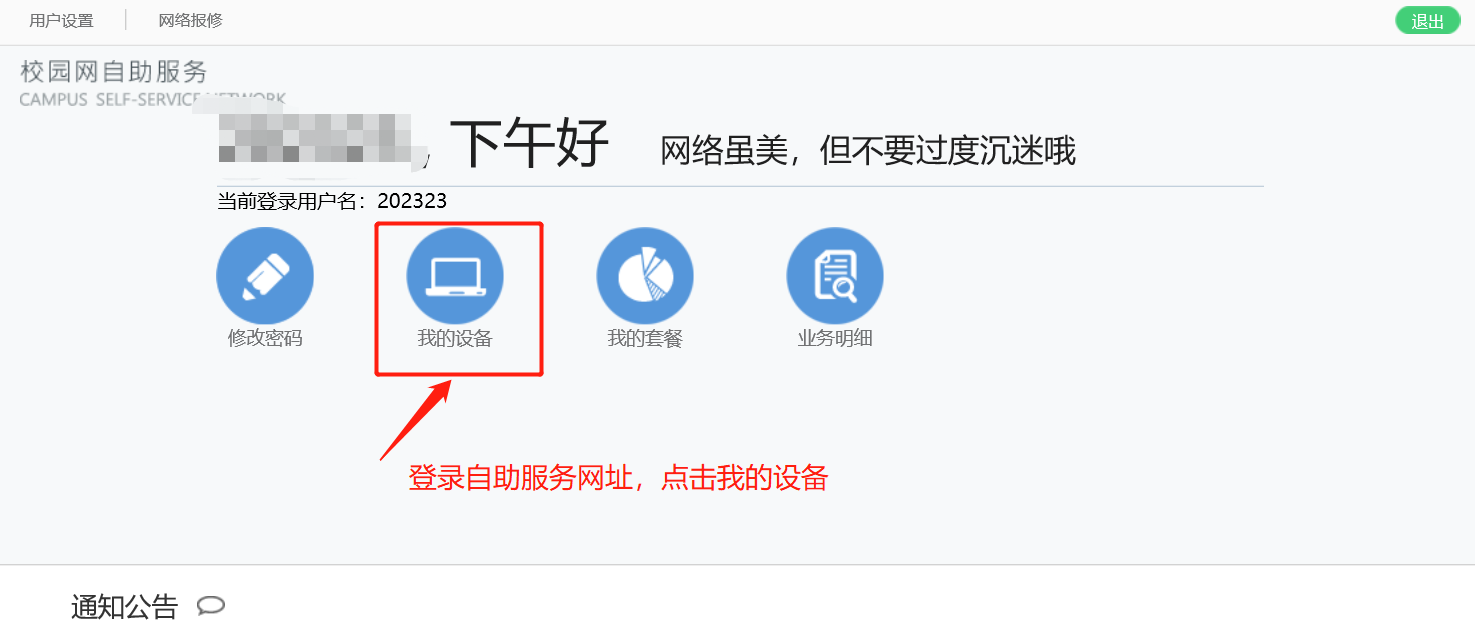 自助服务网址:http://10.255.100.1:8080/selfservice/
