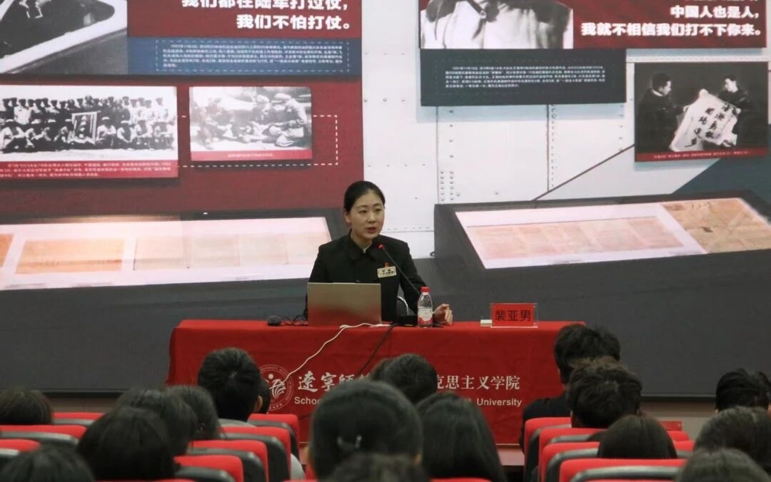 为厚植学生爱国思想根基,增强责任担当意识,2025年10月23日18:30,我院于实训楼109教室举办 “坚持真理 坚定信仰” 马克思主义理论学习系列活动(总第24期):《抗美援朝精神的时代回响》主题讲座。马克思主义学院团委书记曾环老师出席讲座,学院研究生和本科生代表参与学习。本次讲座由裴亚男老师主讲。