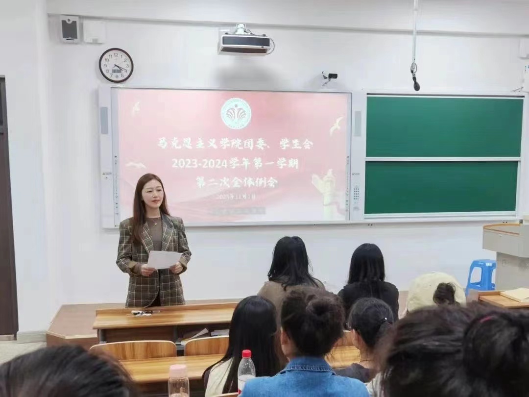 为加强学院团委、学生会成员之间的交流与合作,2023年11月1日16:00,马克思主义学院团委、学生会2023-2024学年第一学期第二次全体例会在实训楼310教室举行。会议由马克思主义学院学生会执行主席张爱雪主持。