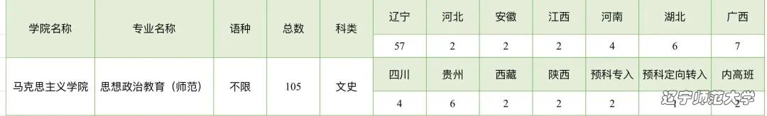 ★辽宁师范大学马克思主义学院思想政治教育(师范)专业2020年本科生招生计划