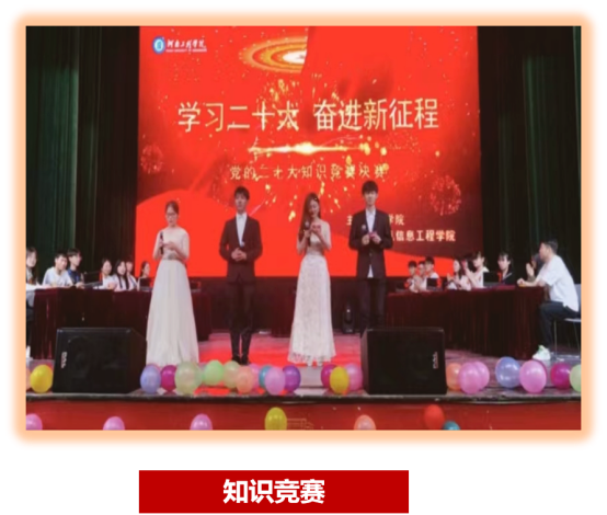 2023年3月河南工程学院理学院党委获得首批河南省党建工作标杆院系培育创建。自创建以来,理学院党委坚持以习近平新时代中国特色社会主义思想和党的二十大精神为指引,坚持“党建引领+事业发展”的工作理念,坚持以标准化、规范化、特色化、品牌化和成果化为目标,坚持实施“基础夯实”“品牌打造”“先锋引领”三大工程,通过重点培育、持续提升和整体打造,形成集学科优势和理学特色于一体的“四品牌两体系” 党建工作机制。