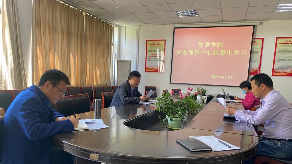 4月24日下午,外语学院党委理论学习中心组在7B316进行了集中学习。会议由外语学院党委书记王志伟主持,全体中心组成员参加。