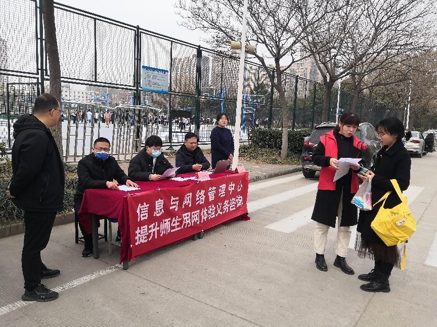 中心支部高度重视本次活动,活动前,认真撰写活动方案,召开专题会议进行部署,提前在各校区布置好咨询台。活动中,教职工们按照工作分工,井然有序地开展工作。本次活动吸引了许多师生到现场咨询,现场的工作人员逐一认真解答。现场还给每位前来的咨询师生发放了“提升师生用网体验温馨告知书”,活动现场的气氛十分融洽,活动取得了良好的效果。