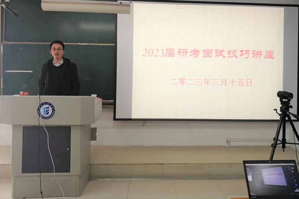 吴爱梅以“研究生面试攻略”为题做了主题讲座。她从研究生复试的重要意义、研究生面试的关键环节、研究生面试的礼仪、研究生面试的注意事项等方面进行分析,详细讲解了复试前需要准备的基本知识和必备的应试技能,提出研究生面试要做好充分准备、注重礼仪形态、做好细节处理等。吴爱梅叮嘱同学们要回归考研初心,做好完全准备,并祝愿每位学生都能够进入心仪的大学继续深造。