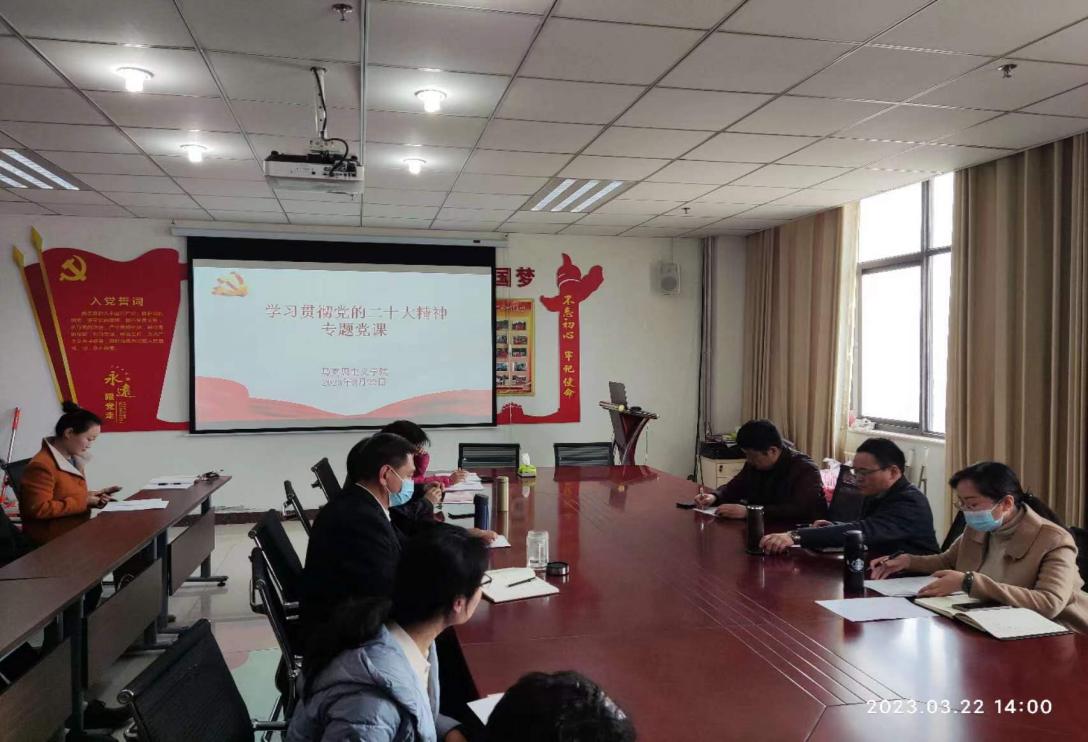 为更好更深入地学习贯彻党的二十大精神,引导全院教职工深刻领会、准确把握党的二十大精神实质和丰富内涵,3月22日下午,马克思主义学院在综合楼7楼会议室开展学习贯彻党的二十大精神专题宣讲活动,学院党政领导和全体教师参加。