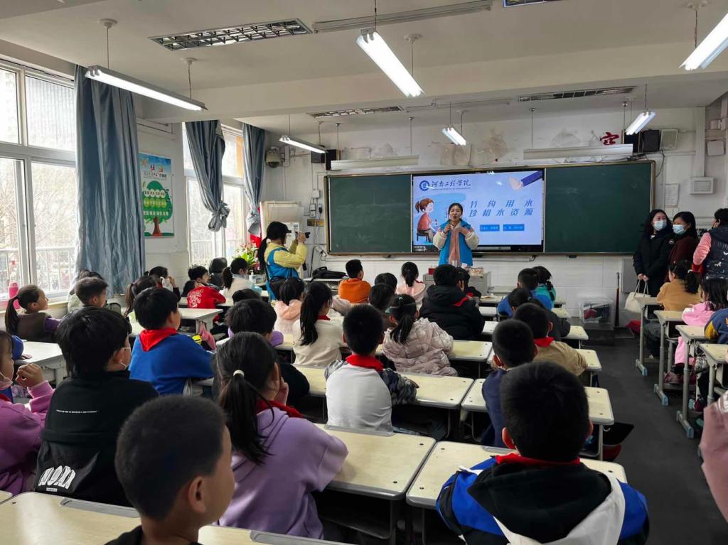 3月24日下午,环境与生物工程学院环境工程2142班团支部志愿者走进郑州市中原区伊河路小学,开展了“节水惜水从小做起,携手共建绿色家园”主题环保科普党团活动,此次活动由学院党委副书记邓天天和分团委书记徐荣敏带队参与,为广大师生带来生动有趣的环保小课堂。