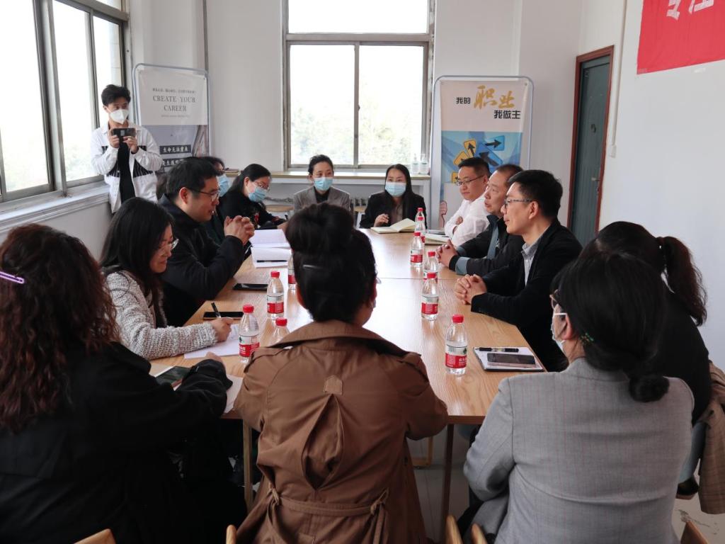3月30日下午,中原工学院就业指导中心陈建副主任、校工会副主席岳瑞凤等一行11人莅临商学院职说心语工作室考察交流。商学院副院长赵严伟及相关负责同志参加交流会。