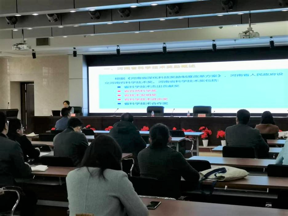 2023年3月30日下午,应我校科研处邀请,郑州轻工业大学科技处副处长姜利英教授在综合楼一楼会议室为我校做“省科学技术奖励申报”的经验分享。科研处刘帅霞处长主持了会议,全校各理工学院科研院长和科研办主任、部分科研骨干等50余人到场参会。