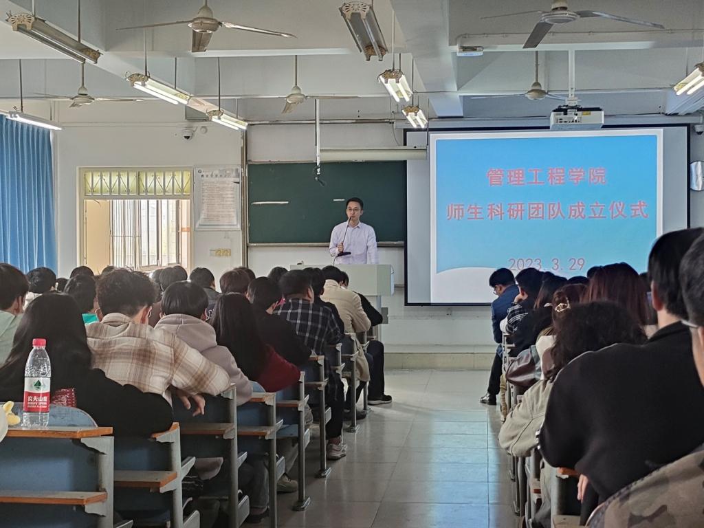 会上,管理工程学院党委书记张立军宣读了学院首批成立的18个师生科研团队人员名单,并介绍了每个团队指导老师的基本情况和团队主要研究方向。
