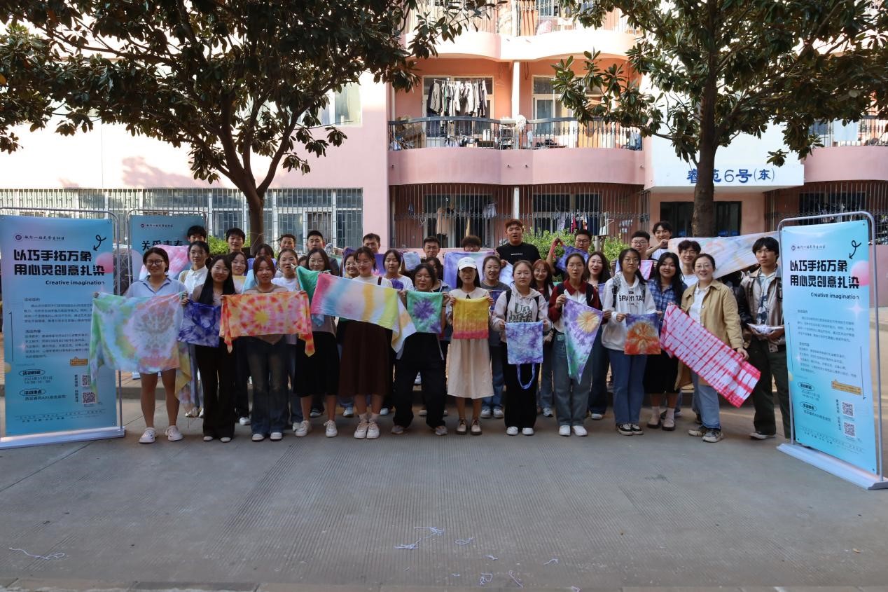 为促进校园心理健康与创意文化的融合,感受艺术手工的魅力,感受扎染文化,校心理健康教育中心与敏行“一站式”学生社区于11月1日下午两点在睿苑A05庭院联合举办了“以巧手拓印万象 用心灵创意扎染”活动。