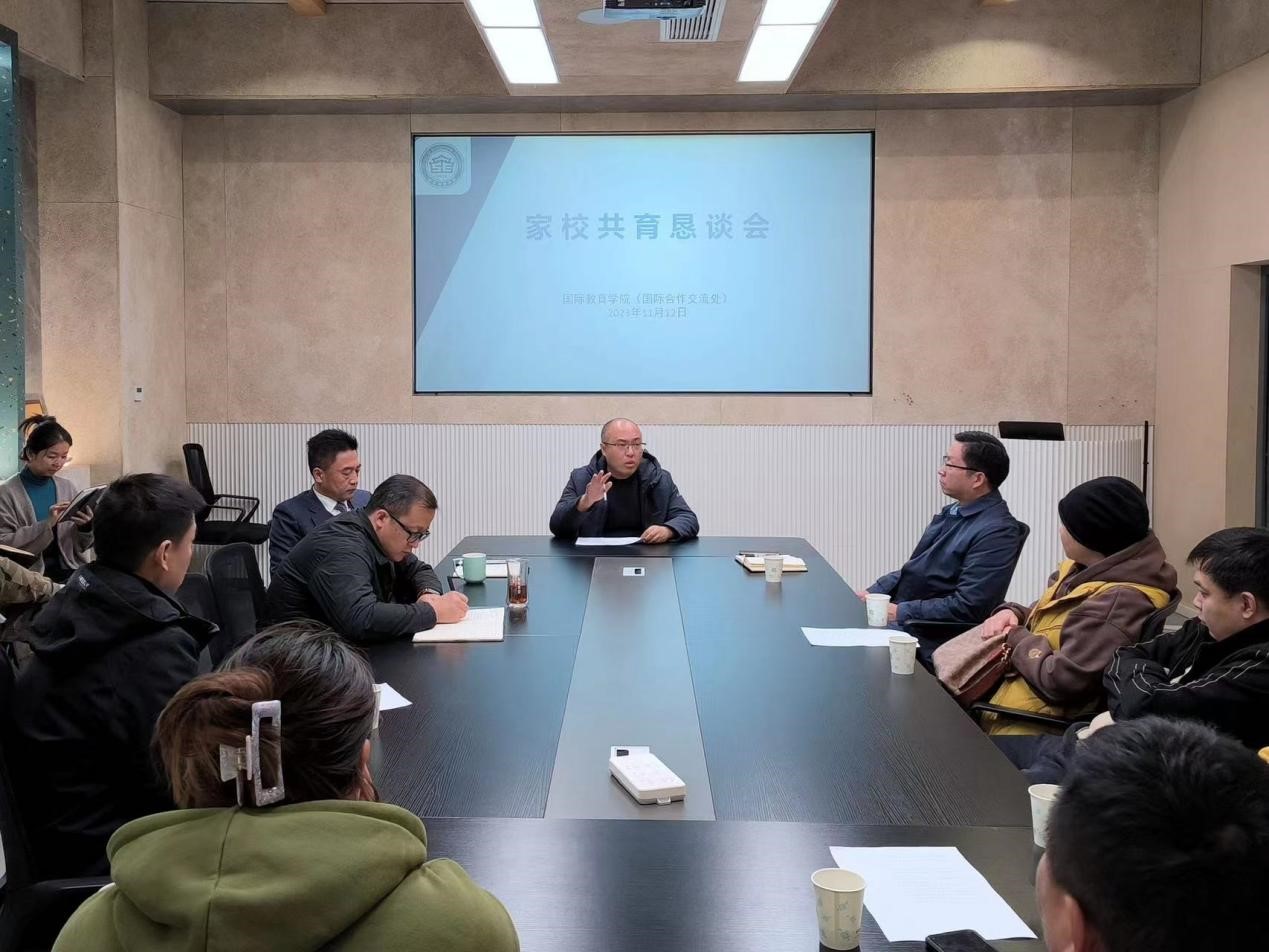 为进一步打造国际教育学院独特的国际合作办学的办学理念和育人模式,展示学院“特色雅思英语教学”和“小组制专业教学”的教学特色,同步宣讲“学生游学团”计划,加强家校沟通协作,共商合作办学项目的推进策略,提升办学成效,11月12日,我院在8307会议室召开了2023年雅思英语方向“家校共育恳谈会”,学院领导班子、特色项目负责老师、全体学管干部以及雅思特色教学班部分家长参加了此次会议,会议由党委副书记李载东主持。